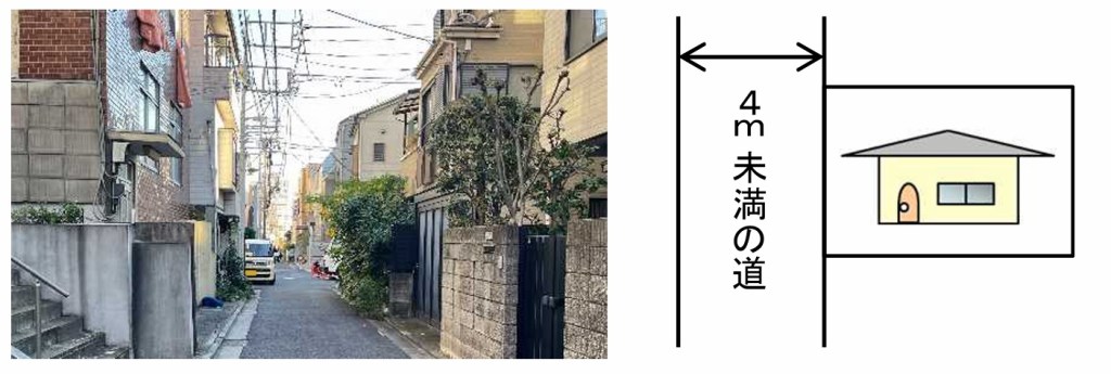 〔接道義務を満たさない(幅員4m未満の道路に接している)敷地のイメージ〕